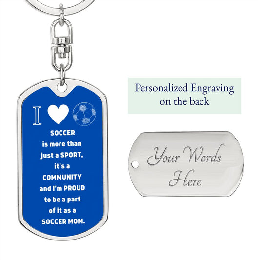 Soccer Mom | Graphic Dog Tag Keychain | Blue