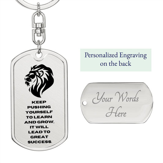 Keep Pushing yourself | Lion | Dog Tag with Swivel Keychain