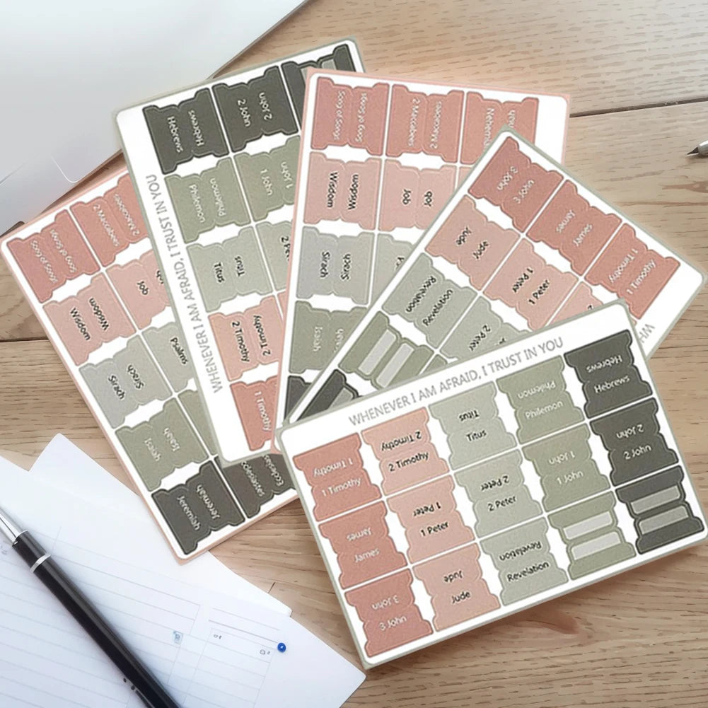 With our Bible tabs, locate any book in seconds! Designed with large print for easy reading, they make your study session smoother and more focused.