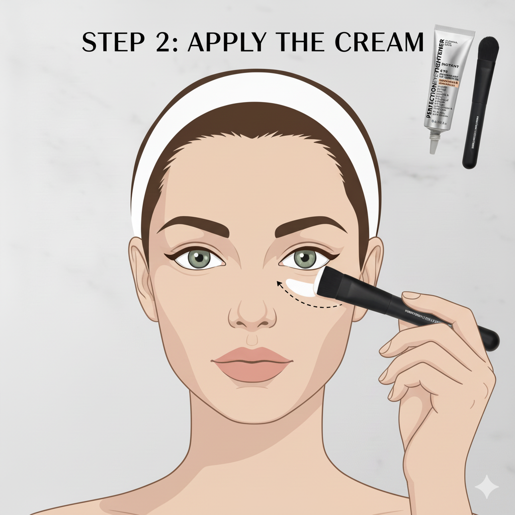 Shake the tube and squeeze out a pea-size amount on the top of the hand. Pick up a tiny amount of the product and apply onto a completely dry eye area for best results.